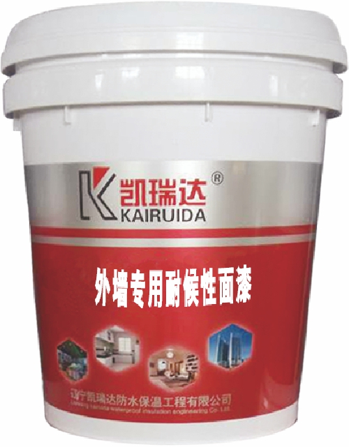 本产品是以高级合成树脂乳液为基料,并配以各种功能助剂填料精制而成。该产品具有紫外线耐受性好、光泽持久、色彩稳定、耐候性好、不粉化、不黄变、耐水性好、耐粘污性强、附着力良好等特点,是优异的高性能耐候面漆。施工方便,技术性能良好,适用于各类建筑的外墙装饰,特别适用于室内外灰泥墙、混凝土、砖石建筑等基层的装饰和保护。